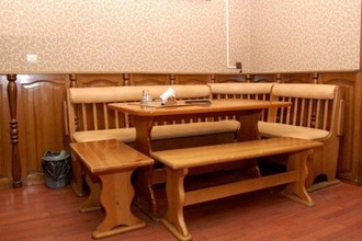 В зале для большой компании есть финская сауна с сухим паром, после которой гости смогут освежиться в бассейне размером 5х2.5 метра. После этого можно будет как следует расслабиться или немного поспать в комнате отдыха на уютной кровати с мягким матрасом. В качестве развлечений для посетителей предусмотрен профессиональный стол и инвентарь для игры в русский бильярд.